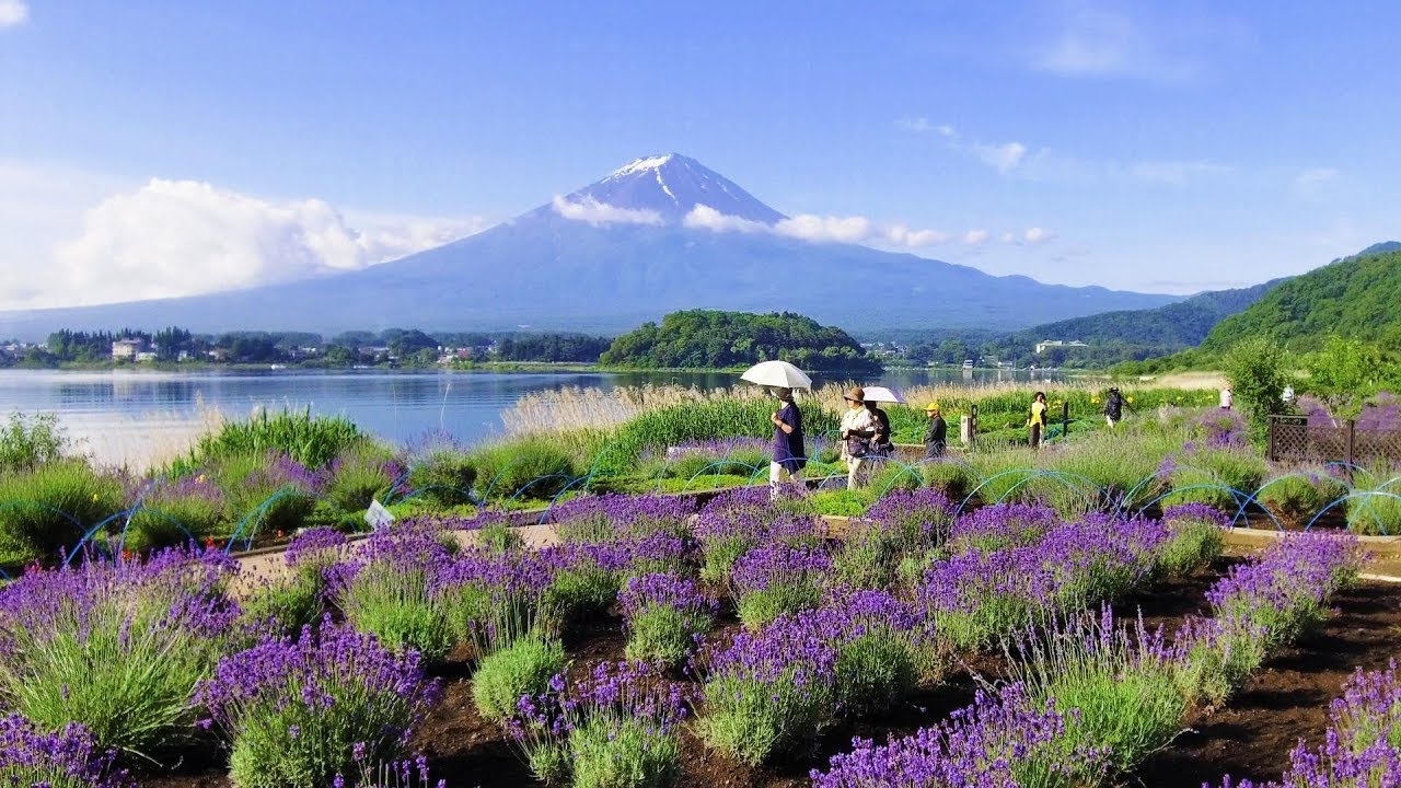 裾野まで広がる雄大な富士とラベンダーの調和が見事です。